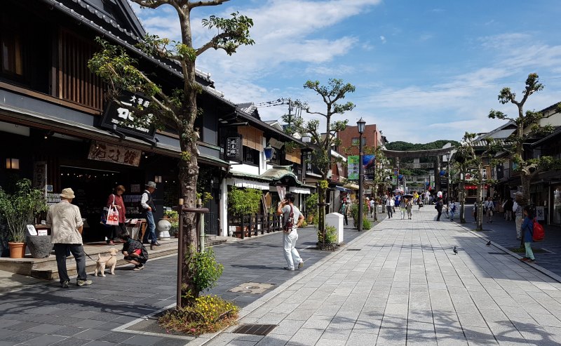 학문의 신인 스가와라 미치자네를 모시는 신사입니다. 일본 전역의 12,000여 개의 덴진 신사들을 대표하는 곳으로 일본에서 가장 중요한 신사중 하나입니다. 신사 주변에 6천여 그루의 매화나무가 흐드러지게 자리하고 있어서 정취가 상당합니다. 신사 입구쪽에 여러가지 기념품 샵과 특산물을 파는 가게들이 있습니다. 매화빵을 찍어내는 가게가 인상적입니다.