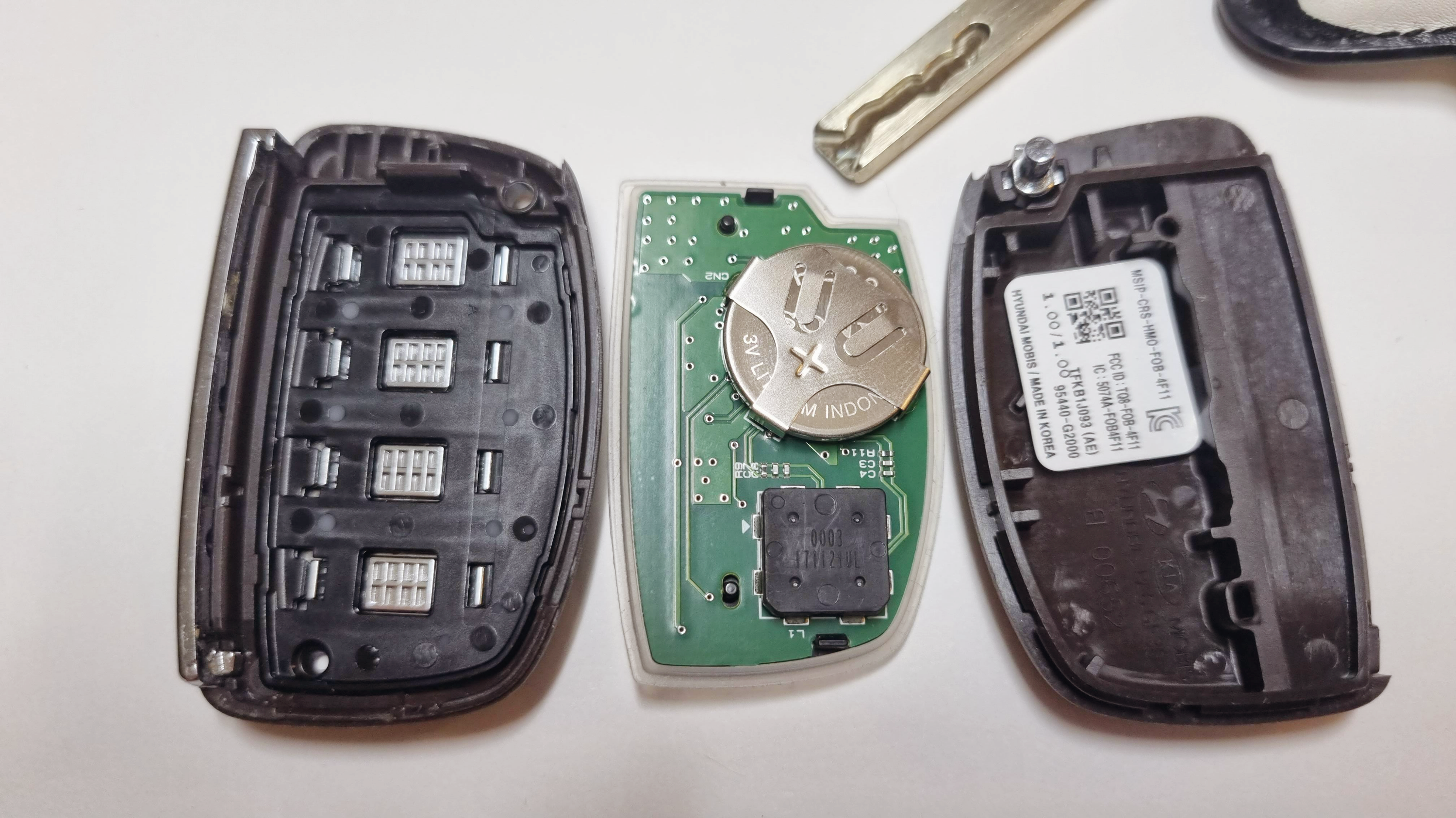4. 스마트키 본체를 분해하면 앞판, 뒤판, 가운데 전자기판으로 나뉘는데 저기 배터리 보이시지요? 새것으로 교체하신 후 다시 조립해주시면 배터리 교체가 완료된 것입니다.