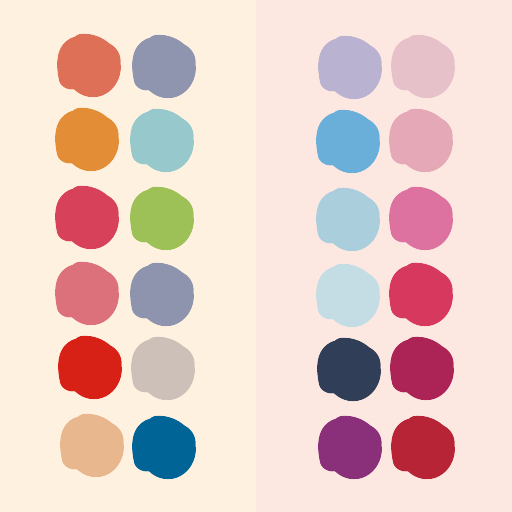사람마다 잘 어울리는 색상과 톤이 있다는 것은 알겠는데 나는 어떤 컬러가 잘 어울리는지 모르겠다면 다음의 팁을 활용해 보세요. 아래 그림은 웜톤과 쿨톤의 대표적인 베이스 컬러입니다. 화장을 하지 않은 내 얼굴을 보고 노란끼가 더 있는지 핑크기가 더 있는지 한번 확인해 보세요. 손을 올려놓고 확인할 수 있는 경우도 있지만 그것은 손의 피부톤이 얼굴과 유사할 경우에만 가능해요. 저 같은 경우에는 선크림을 안 바르는 손과 팔은 이미 갈색이라 비교가 불가능하더라고요.