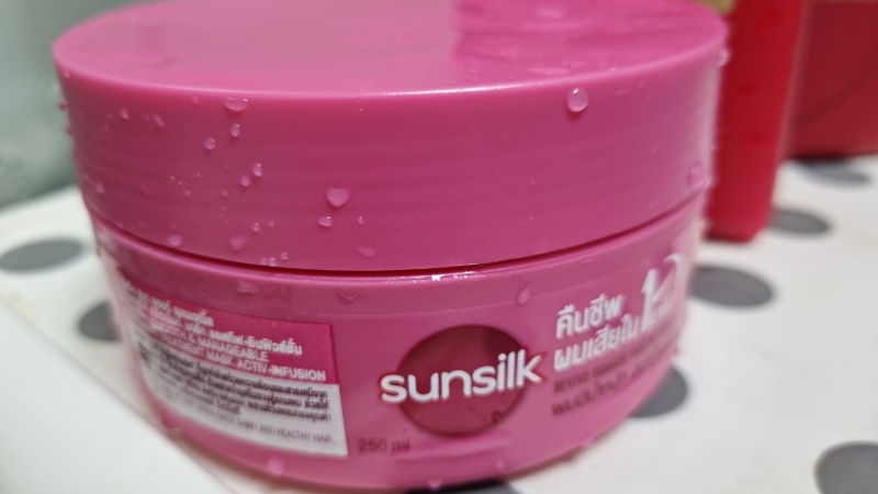 지금 쓰고 있는 제품들은 진짜 너무너무 무난합니다. 오랜기간 사용한 제품들입니다. 헤어팩은 태국 갈 때마다 몇 개씩 사가지고 오는 제품입니다. 선실크 헤어팩인데 아주 무난한 꾸덕한 헤어팩입니다. 사실 되게 무난한 헤어팩이라 비슷한 제품들이 우리나라에도 많습니다. 손상모용 트리트먼트 사시면 대부분 비슷한 느낌일 거예요.
