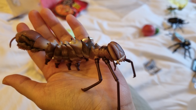 크기가 상당히 크고 디테일도 좋은, 그러나 정체는 모르겠는 벌레입니다. 관절이 움직여서 가지고 놀기 좋은 장난감입니다.