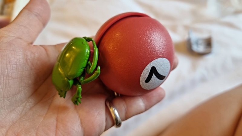쇠똥구리가 공을 굴리는 장난감이에요.
