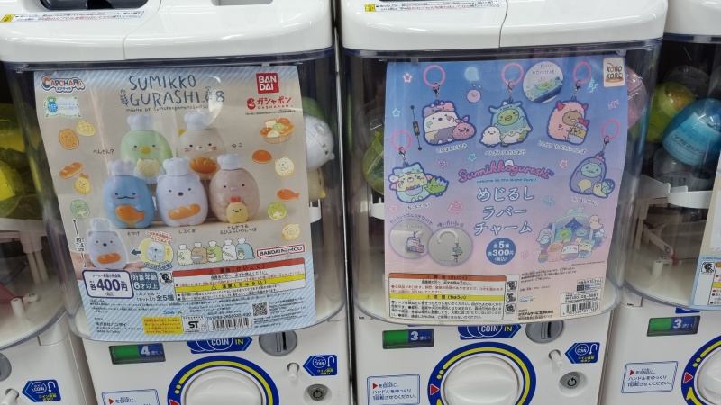 이런 식으로 가챠 머신이 가득가득, 뭘 딱히 뽑지 않더래도 재미있는 요소이죠. 예전에는 기능적으로 화려했던 호빵맨시리즈가 있었던 것 같은데 요즘은 안보이더라고요.