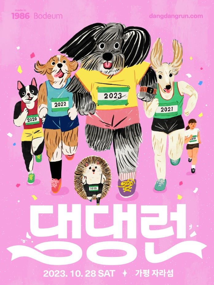 댕댕런에 대해 잠깐 말씀드리자면 보듬주식회사의 강형욱 훈련사와 1986 프로덕션의 공동 주관으로 2017년부터 열려왔던 강아지와 함께 할 수 있는 마라톤이에요. 코로나 관련 규제가 사라지고 마스크를 벗고 달릴 수 있는 기회이니 많은 분들이 기분 좋게 참여하실 수 있을 것 같습니다.