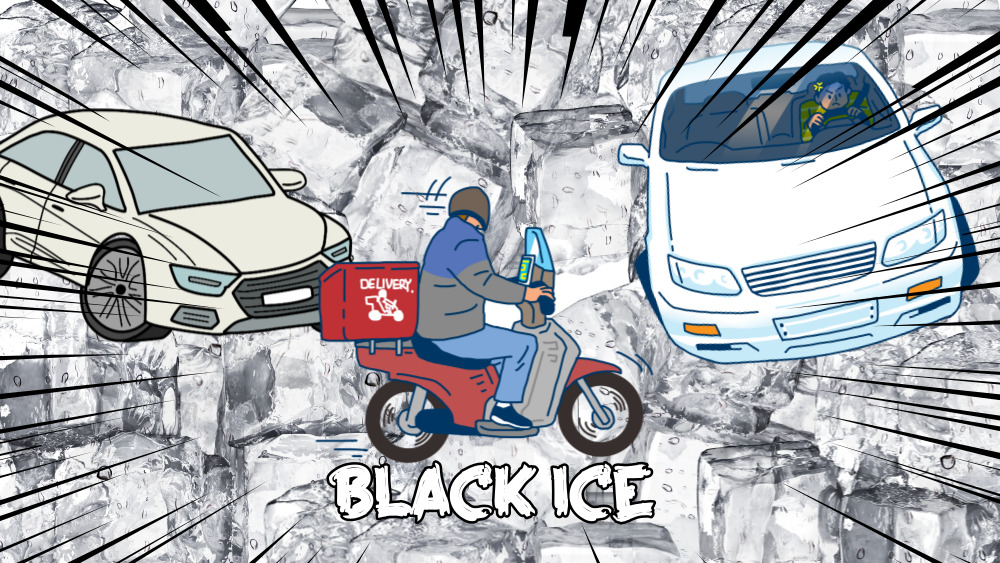 블랙 아이스, 직역을 하자면 '까만 얼음'인데요. 이것의 의미는 도로위에 얇게 만들어진 살얼음판을 말합니다. 도로 아스팔트 때문에 검은색으로 보여 블랙 아이스라고 부르고 문제는 이 얼음이 아스팔트와 구분이 잘 되지 않는다는 점입니다. 구분이 된다 해도 실상 피해가기도 어렵습니다.