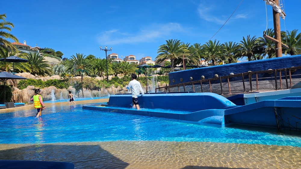 체크인 전에 수영장에 가기 위해서는 문앞 직원에게 요청하면 버기를 잡아줍니다. 메인수영장에서 조금만 더 아래로 내려가면 어린이 수영장이 있고요. 유아 혹은 초저학년들이 이용하면 좋을만한 슬라이드가 있습니다. 그냥 내려가면 잘 안내려가지만 엎드리고 눕고, 자기만의 방법을 터득하더라고요. 이곳에서도 즐겁게 놀았습니다.